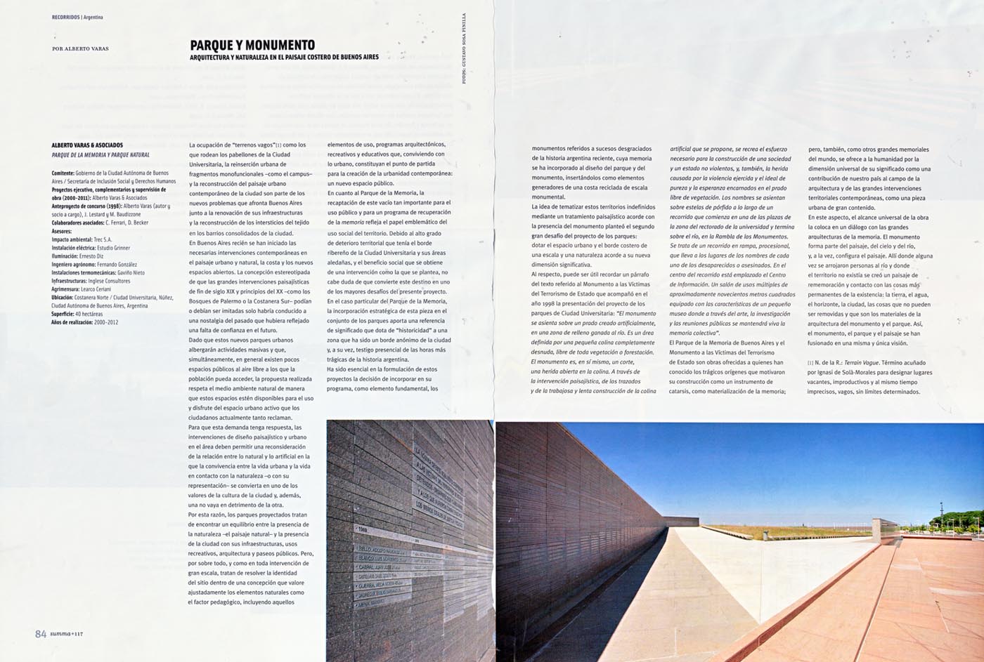 Ha sido esencial en la formulación de estos proyectos la decisión de incorporar en su programa, como elemento fundamental, los monumentos referidos a sucesos desgraciados de la historia argentina reciente, cuya memoria se ha incorporado al diseño del parque y del monumento, insertándolos como elementos generadores de una costa reciclada de escala monumental.